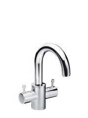 Die konsequente und puristische Serie wird bestimmt durch die Formen von Kreis und Zylinder. Vom Bedienhebel bis zum Auslauf. Zurückhaltend und zugleich akzentuierend.